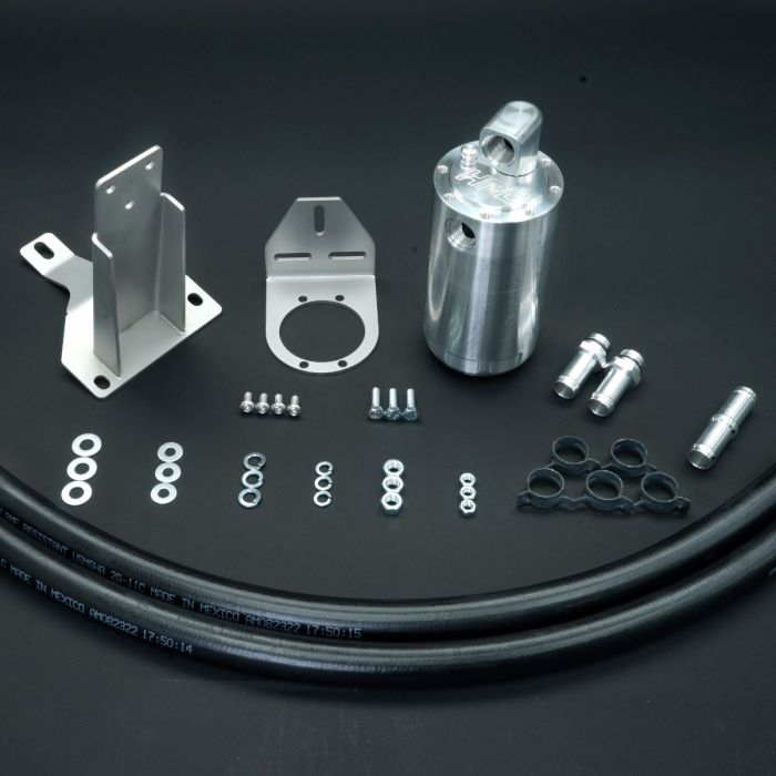 HPD’s oil catch can / oil separators come in universal and complete kits with all required stainless steel laser cut bracketry, correct size hose tail fitting, washable internal stainless mesh filters, cut to size oil resistant hosing, bolts, nuts, washer, spring clamps and installation instructions for each vehicle.